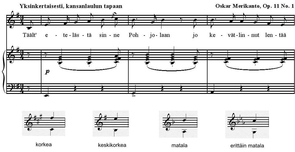 - Laitokset neljälle eri äänenkorkeudelle: korkealle, keskikorkealle, matalalle ja erittäin matalalle äänelle.